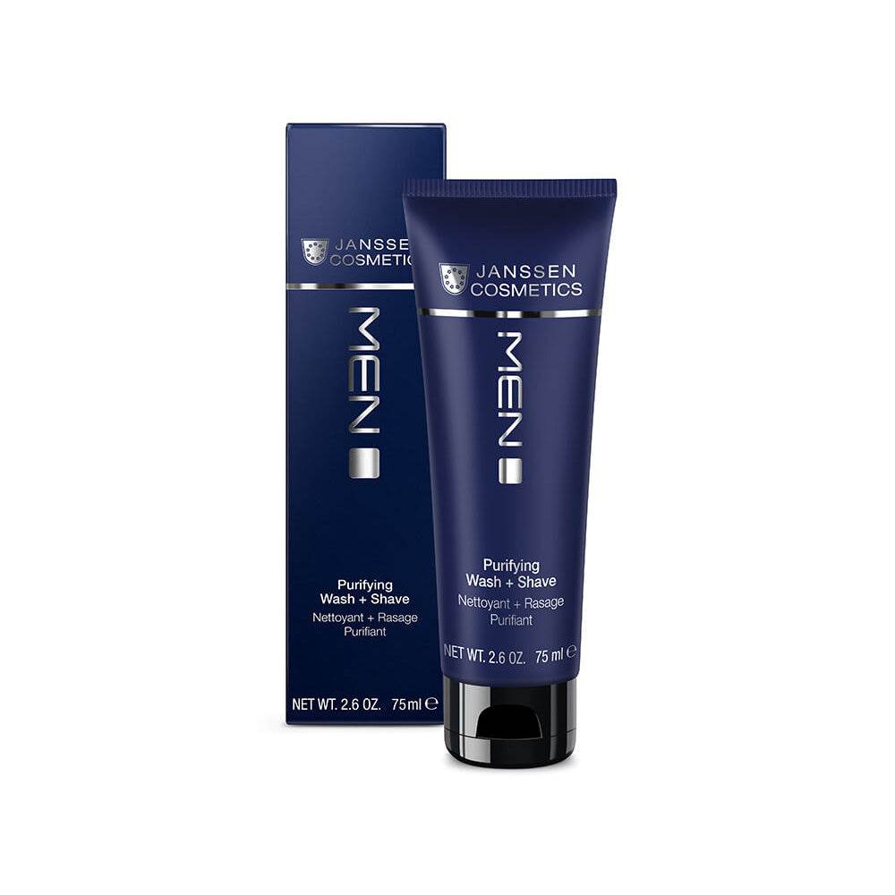 Janssen Cosmetics Men Nettoyant + Rasage Purifiant pour un nettoyage en profondeur et un rasage doux.