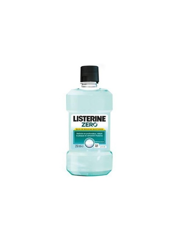 Listerine bain de bouche less intense, zero alcohol, haleine fraiche, 250mlLe bain de bouche  Listerine Zero Menthe Douce  permet un nettoyage profond, réduit la plaque dentaire et fournit une haleine fraîche.