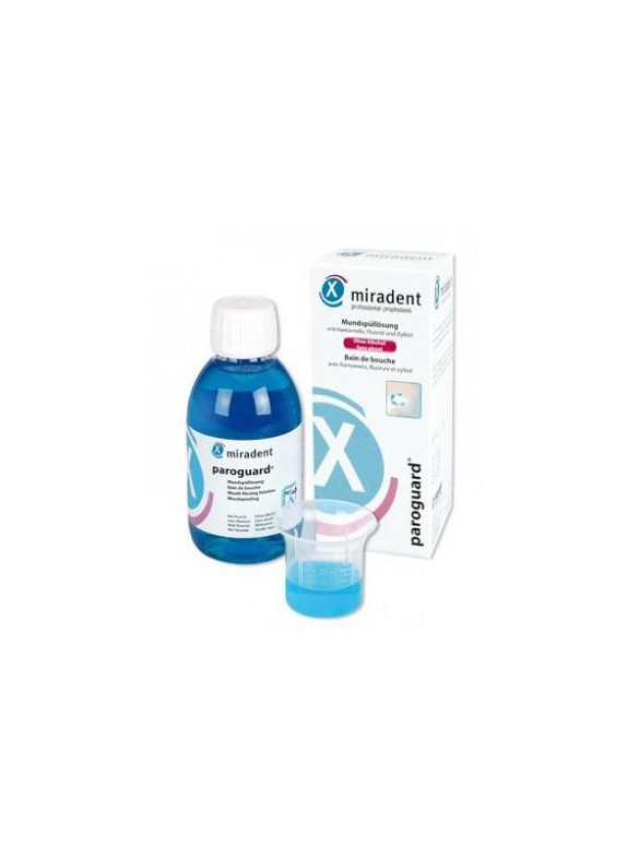 MIRADENT PAROGUARD BAIN DE BOUCHE 200MLparoguard est sans alcool, nourrit doucement les gencives et prévient les irritations des gencives et de la bouche et de la gorge.Pour un nettoyage et l’entretien de la bouche et de la gorge toute la zone parfaite et durable ne peut être garanti même avec l’hygiène buccale limitée.